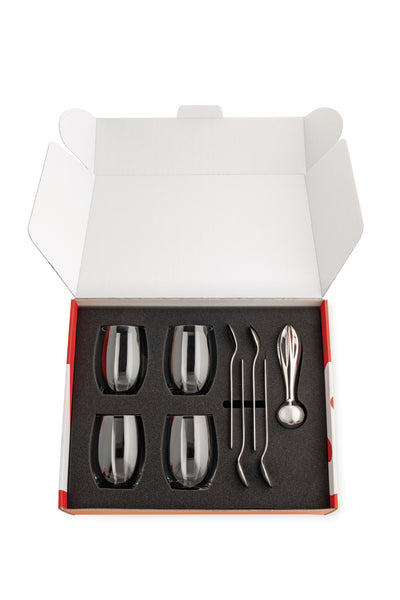The Elevo Champagne Bucket is an impeccable vessel, crafted from lead-free European crystal and set With semi-precious Agate gemstone. While designed to stylishly chill a variety of bottled libations, we’ve also found this champagne bucket makes a gorgeous centerpiece when filled with fresh seasonal flowers.