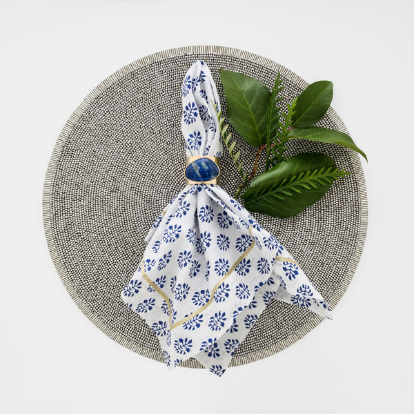 Crisp and classic in blue and white. These printed dinner napkins are so versatile. Love them with pops of purple, red, or blue for Spring, or add our shell napkin rings for a beach party vibe. These are year-round tablescape winners!