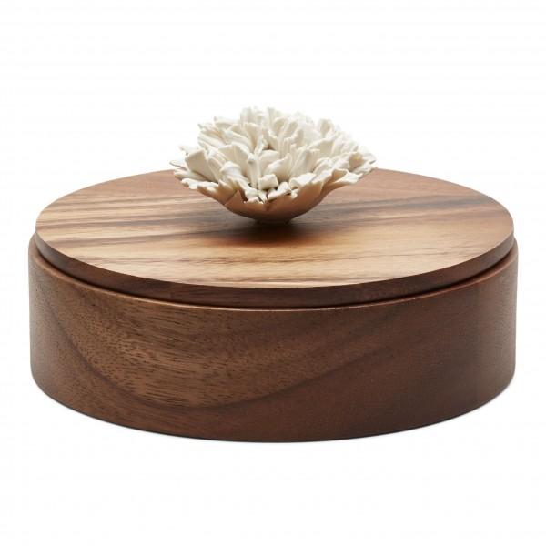 These capillary diffusers are part of the Floral Collection with a Porcelain White flower and Wooden Acacia base. Entirely hand made, it is a unique piece on which you add a few drops of perfume or essential oil. As a flower draws water through its stem, this perfume diffuser is impregnated with the scent poured on its petals, then the perfume escapes gently and flies into the air of the room. Ecological and beautiful, this product perfume your space in a natural and non-toxic way.